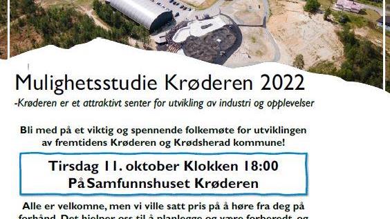 Mulighetsstudie Krøderen - første innspillsmøte - Krøderen er et attraktivt senter for utvikling av industri og opplevelser PROGRAM FOLKEMØTE;Dato/tid: Tirsdag 11. oktober Klokken 18:00 til ca 20:00...