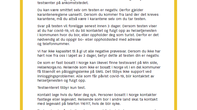 Informasjon fra Helsedirektoratet til alle som reiser til Norge