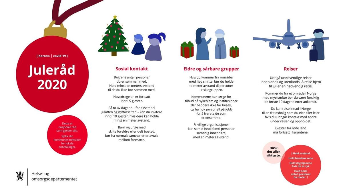 Endringene trer i kraft fra i dag 11. desember 2020. Det ble også vedtatt at den lokale forskriften blir opphevet fra og med 21.12.2020. De nasjonale julerådene vil erstatte forskriften. Les julerådene her. (JPG, 0 B)