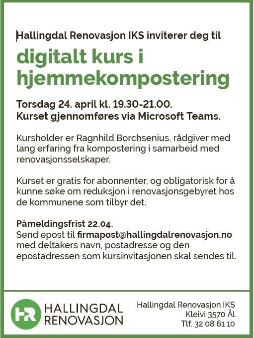 Send epost til firmapost@hallingdalrenovasjon.no med deltakers navn, postadresse og den epostadressen som kursinvitasjonen skal sendes til.