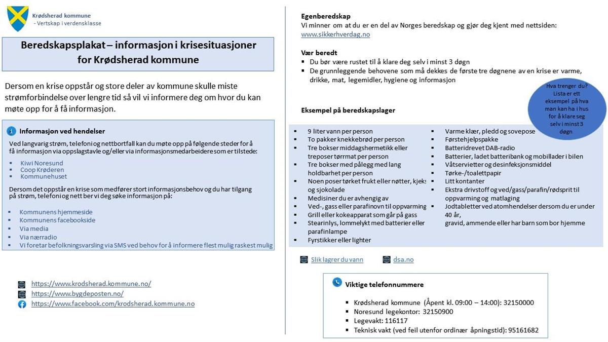 Høsten 2018 ble kampanjen Du er en del av Norges beredskap lansert. Hovedbudskapet var at alle bør tenke gjennom hvilke hendelser og ulykker som kan skje, og planlegge for å kunne ta vare på seg selv og de rundt seg i en uke ved bortfall av kritisk infrastruktur, som for eksempel strøm, vann og mobilnett.