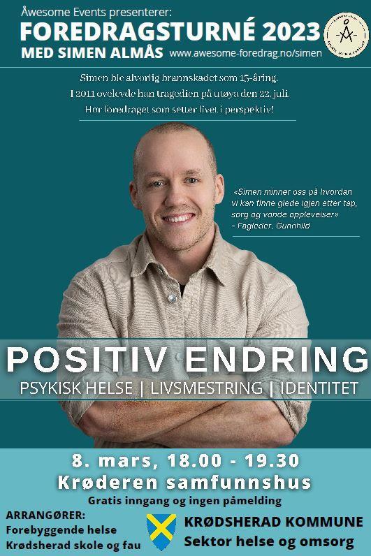 Forebyggende helse, Krødsherad skole og Fau legger sammen til rette for foredragskveld med Simen Almås, på Krøderen samfunnshus 8.mars kl.18:00 - 10:30. Psykisk helse, livsmestring og identitet står i fokus.
