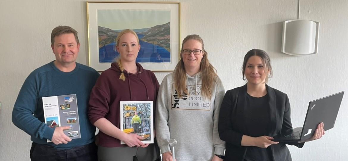 Fra venstre: Lasse Olsen, Ingvild Bergerud, Nina Lesteberg og Matilde Nordli Kristoffersen Her er gjengen med nye medarbeidere på kommunehuset.