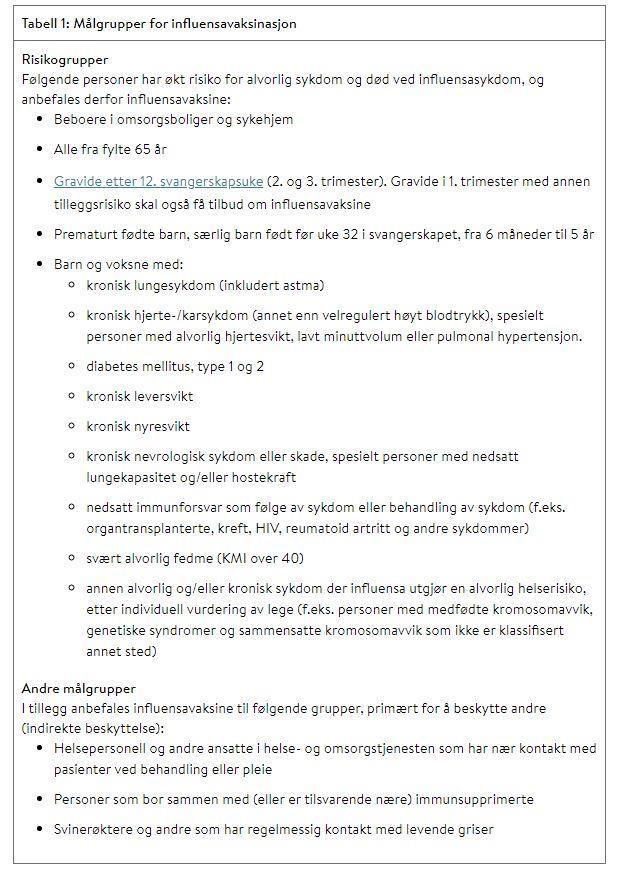Det anbefales at vaksinen tas i løpet av oktober/november 2022.