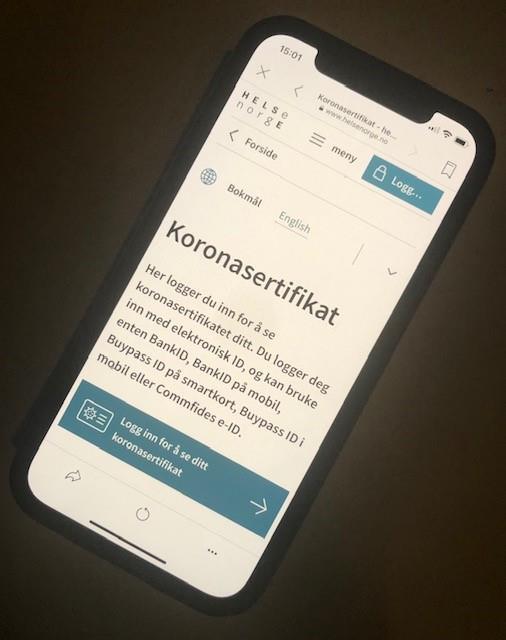 Koronasertifikat er tilgjengelig på www.helsenorge.no for alle innbyggere med fødselsnummer eller d-nummer. Man må ha Bank-ID, Bank-ID på mobil eller tilsvarende får å logge seg på www.helsenorge.no. Her vil du finne oppdaterte koronasertifikater, basert på vaksiner du har fått, gjennomgått koronasykdom og koronatester du har tatt hos helsepersonell. Du kan også skrive ut koronasertifikatene dine hvis du ønsker å ha de i papirversjon, men dette er ikke nødvendig. Vi anbefaler at alle som kan bruke www.helsenorge.no gjør det.