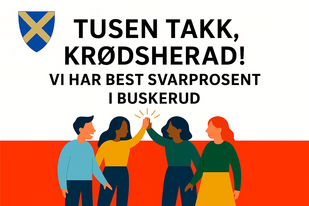 Undersøkelsen er avsluttet og Krødsherad kommune har oppnådd den beste svarprosenten i hele Buskerud i årets undersøkelse. Det er fantastisk – og det er takket være dere innbyggere!