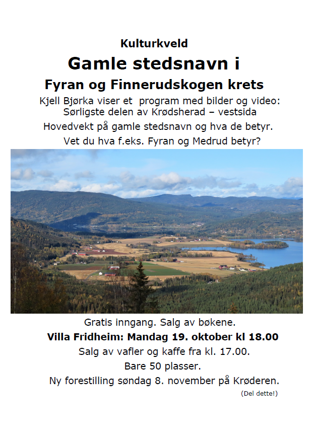 De populære foredragene med gamle stedsnavn i Krødsherad fortsetter. Kjell Bjørka har nå ferdigstilt boka om Fyran og Finnerud skolekrets.