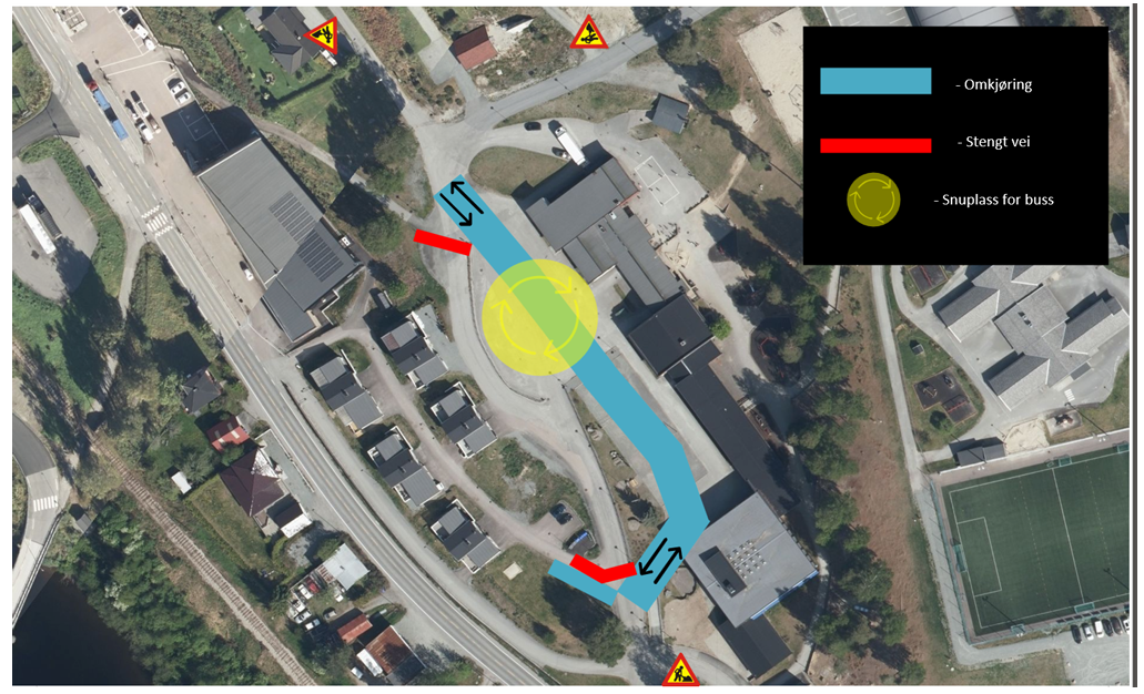 Det er nå innført midlertidig endret kjøremønster for all trafikk som skal mot Byåsen, Krødsheradhallen og Krøderen barnehage.