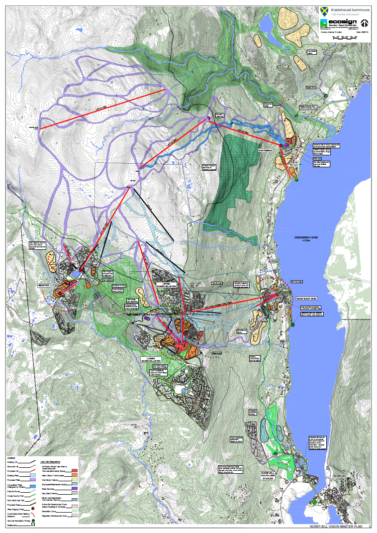 Vi har nå fått kartet fra Ecosign, som sammenfatter deres råd og anbefalinger til en videre vekst og utvikling på Norefjell. Ut fra naturgitte forutsetninger og forventet attraksjonskraft. Det er viktig for kommunen å se helheten slik at det kan settes gode rammer og bestemmelser for Norefjell som en funksjonell helårs fjelldestinasjon i framtiden. Dette kartet er ikke den nye kommunedelplanen, men et kunnskapsgrunnlag og innspill til grunneiere/aktører sitt arbeid med arealinnspill.