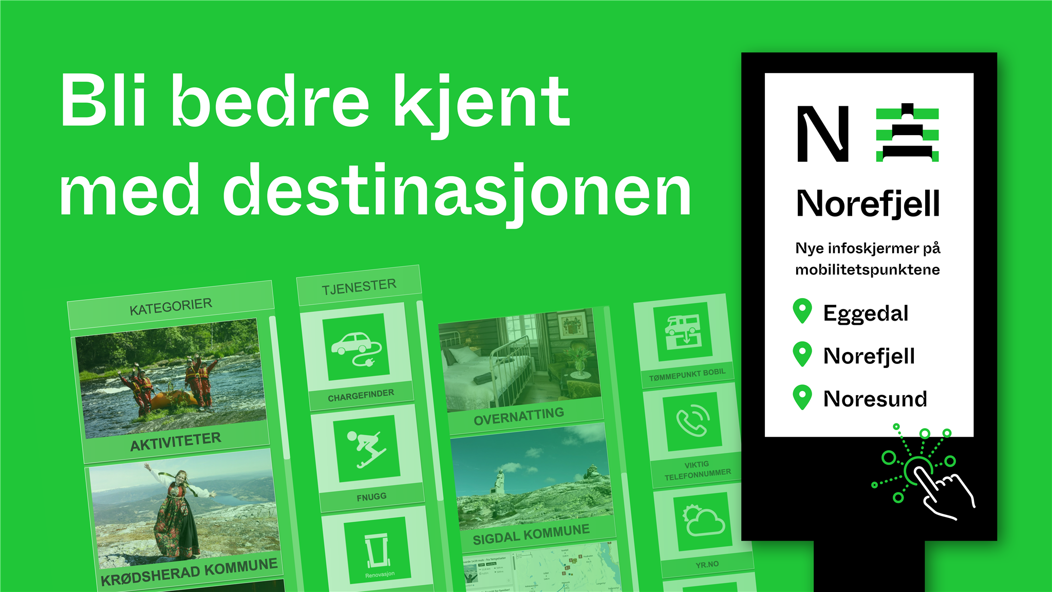 - Infoskjermene blir svært berikende for destinasjonen. Dette gjør det mulig å formidle i det fysiske hva man kan se, gjøre og oppleve i regionen, og plasseringene av skjermene representerer også mobilitetspunkt. Vi håper at mer synlighet og økt bevisstgjøring, gjør sitt til at både innbyggere, fritidsinnbyggere og besøkende for øvrig kan få en bedre opplevelse. Samtidig vil den nye mobilitetstjenesten knytte fjellet og bygdene rundt mer sammen, forteller daglig leder i Visit Norefjell, Camilla Wold Knudsen.
