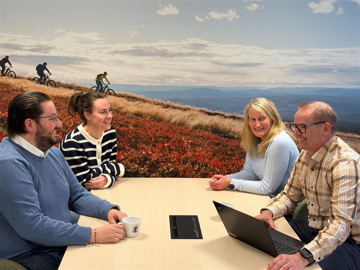 Fra venstre: Ordfører Andreas Kagiavas Torp, virksomhetsleder forebyggende helse Liv Brekka, tillitsvalgt for akademikerne Anne Gro Haviken og konstituert kommunedirektør Gunnar Loe. - Prosjektet handler om å redusere kommunens driftskostnader, men gir også viktige gevinster utover dette. Gjennom arbeidet får kommunen økt innsikt i hvordan tjenestene drives, hvordan arbeidsprosessene fungerer og hvordan organiseringen kan forbedres. Erfaringene så langt viser at også mindre justeringer kan gi positive effekter, både for arbeidsmiljø og kvaliteten på tjenestene som leveres, sier prosjektleder Gunnar Loe.
