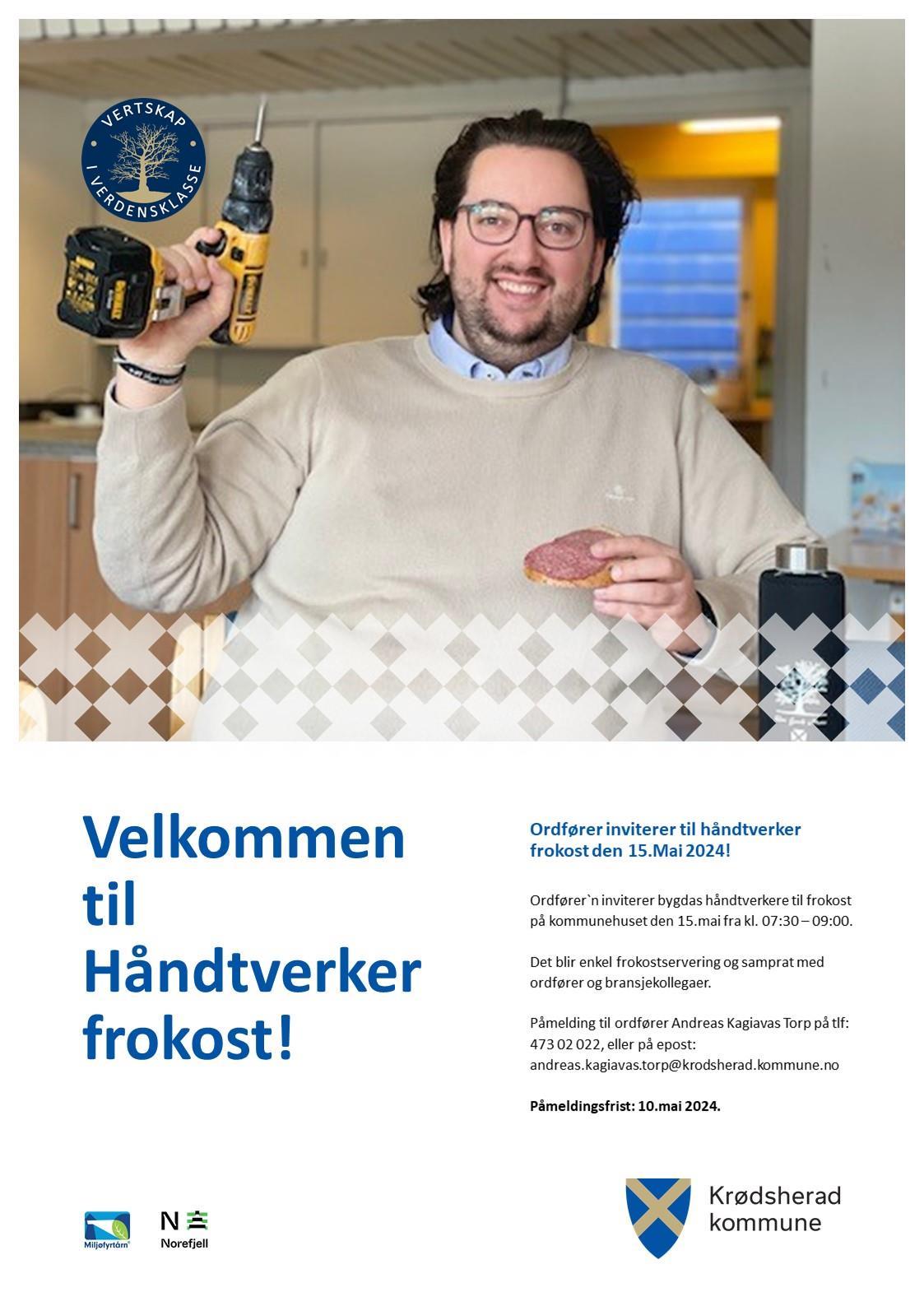 Ordfører Andreas Kagiavas Torp inviterer bygdas håndtverkere til frokost på kommunehuset den 15.mai fra kl. 07:30 – 09:00.