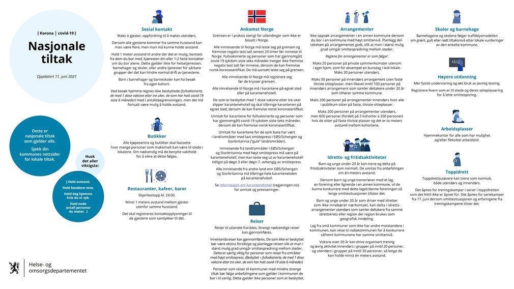 - Treninger: Grupper på inntil 10 personer, så lenge de kan holde minst én meters avstand.