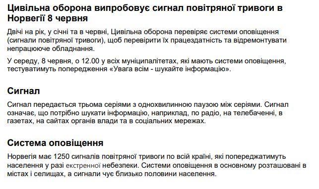 Signalet blir sendt i tre serier med ett minutts opphold mellom seriene. Signalet betyr at du skal søke informasjon i for eksempel radio, tv, aviser, på myndighetenes nettsider og i sosiale medier.
