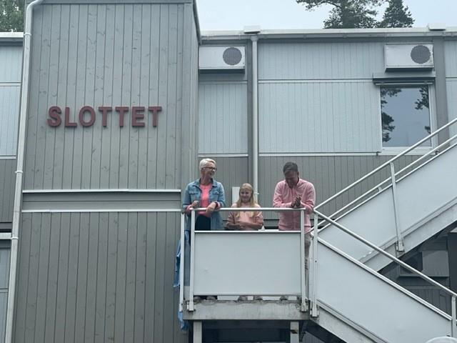 Det var Kommunalsjef for Helse, omsorg og oppvekst, Birte Elen Sætrang, Rektor Lars Erik Raaen og barneskolens elevrådsleder Mathea J. Andersen, som sammen avduket Slottet.